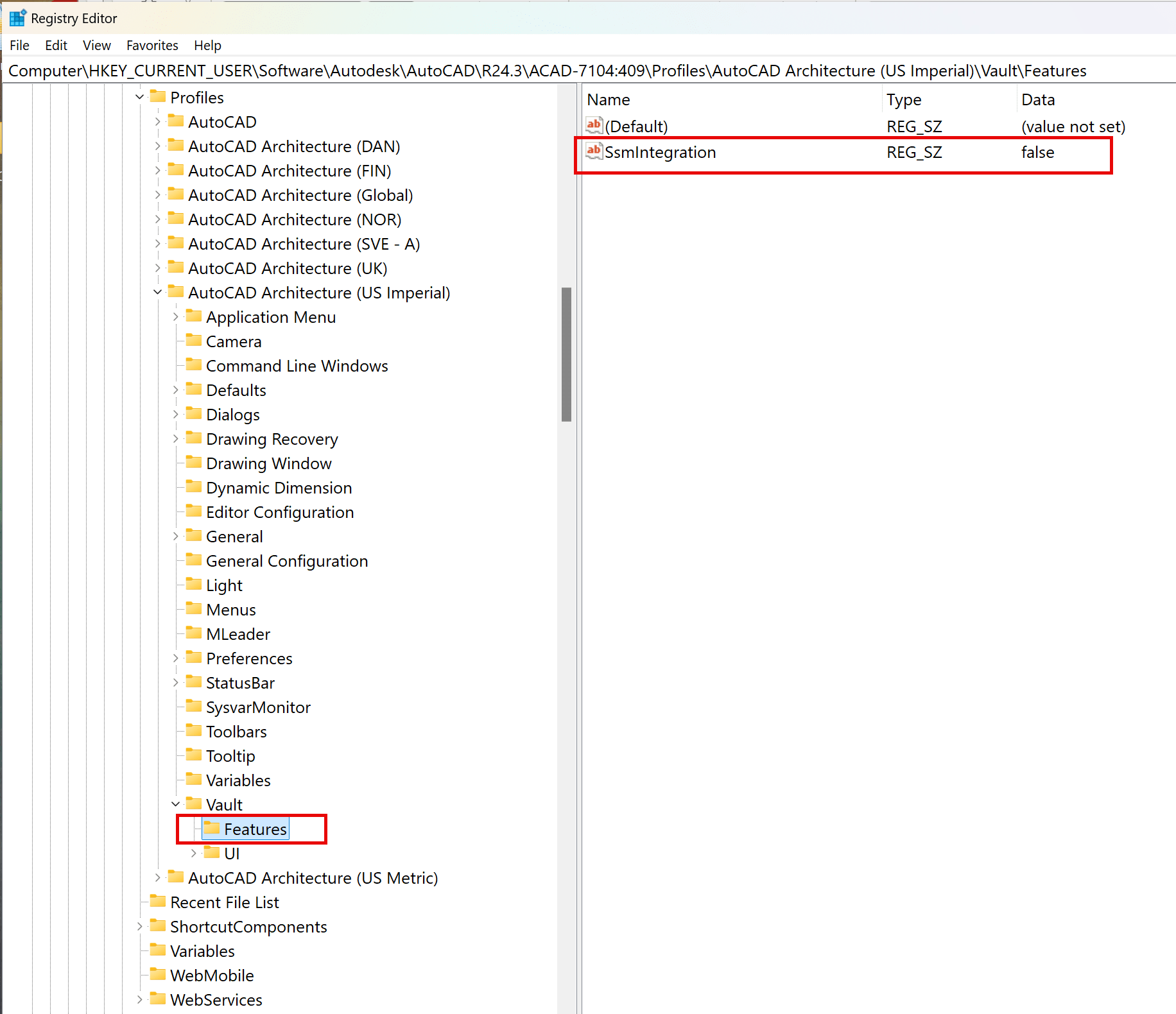 Architecture 2024: HKEY_CURRENT_USER\Software\Autodesk\AutoCAD\R24.3\ACAD-7104:409\Profiles\
