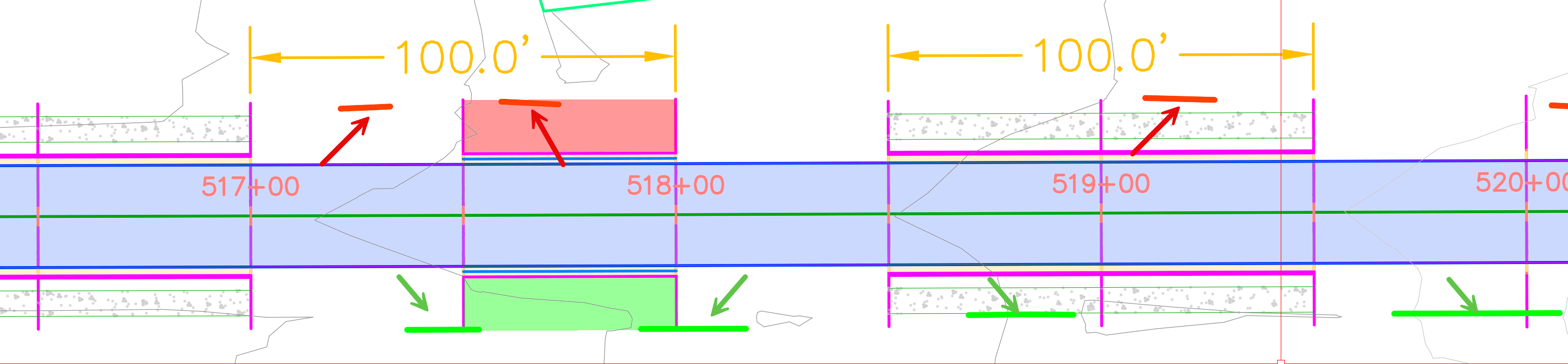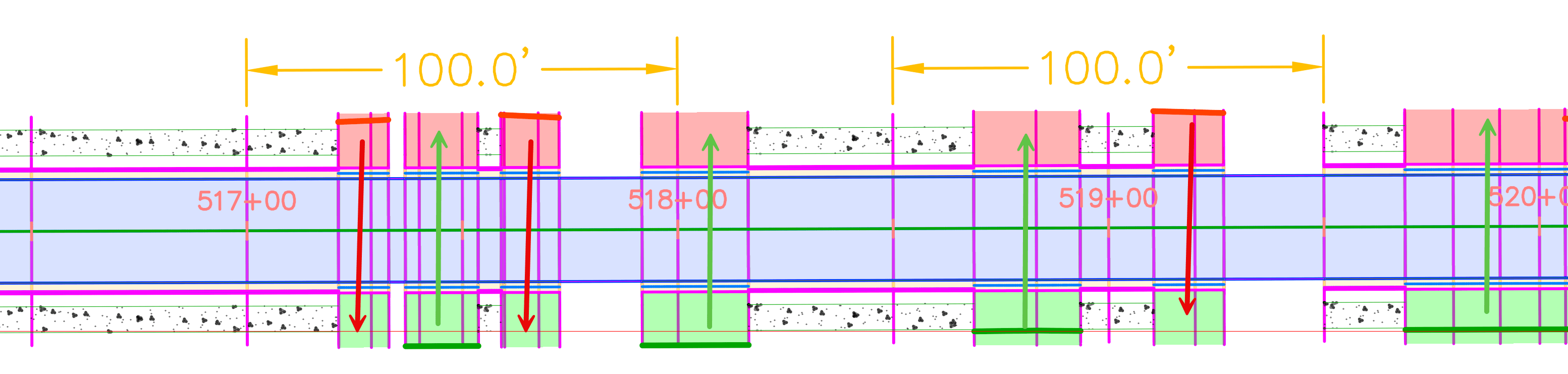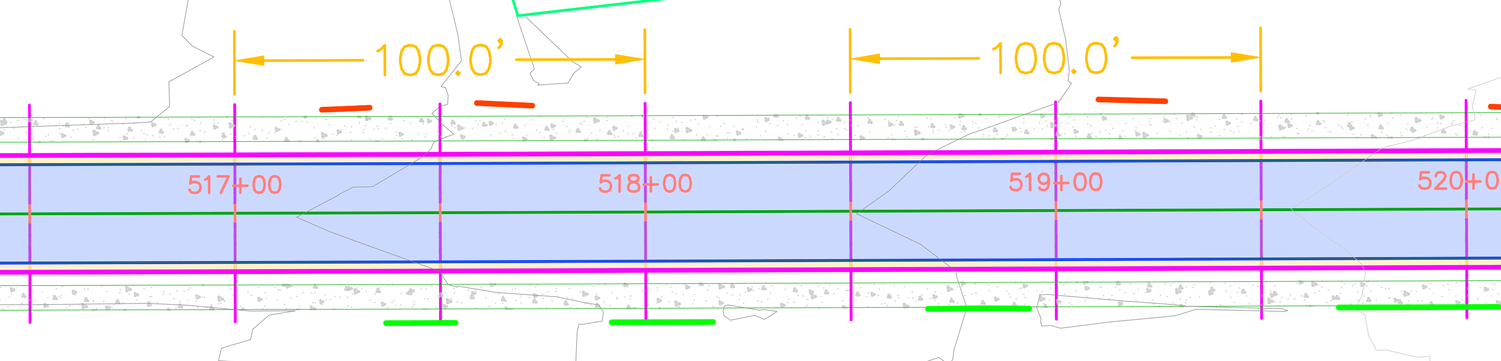 Additional sections are added at driveway target limits (end ponts)