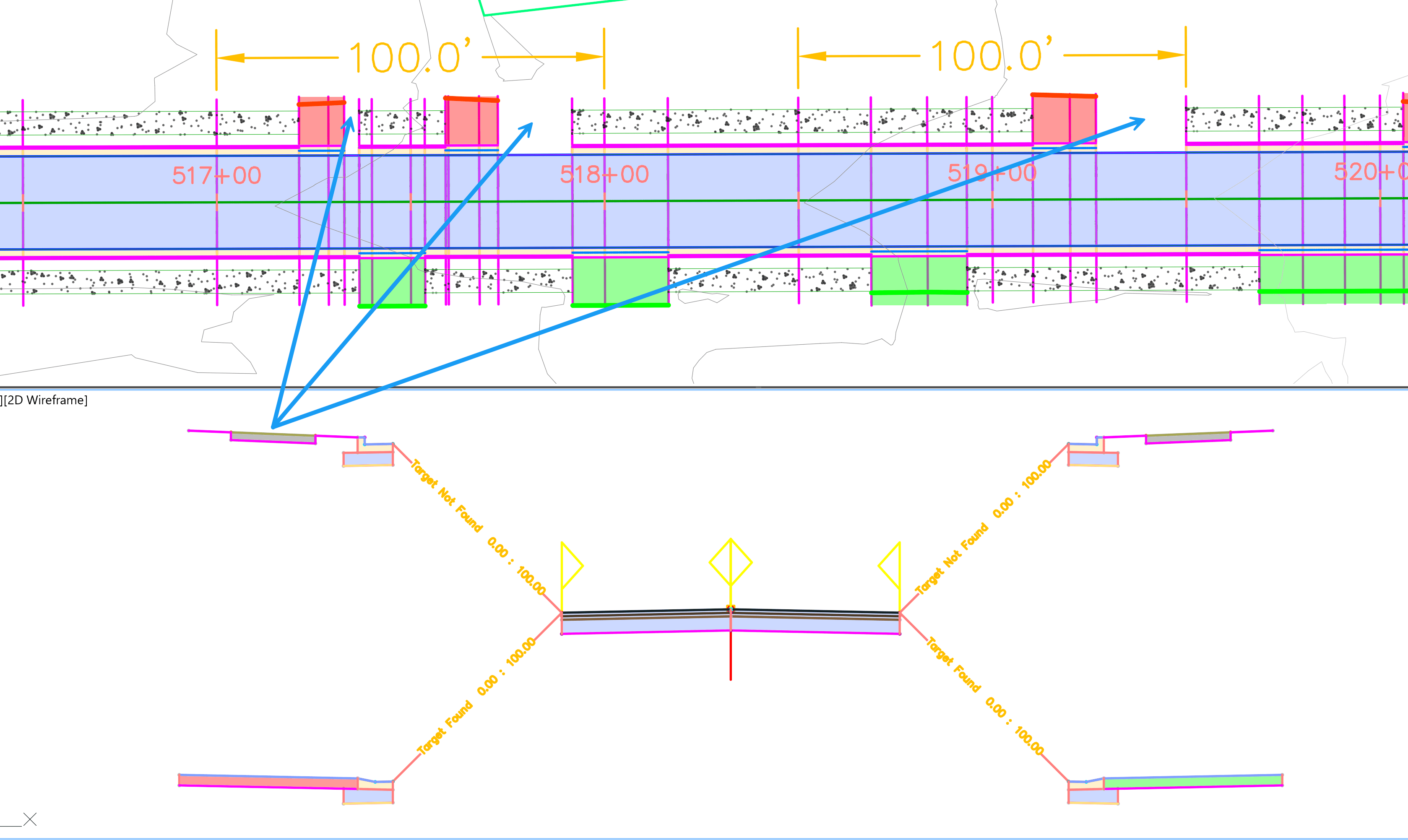 When the target driveway are set, Civil 3D at random abruptly ends the sidewalk areas between driveway sections.
