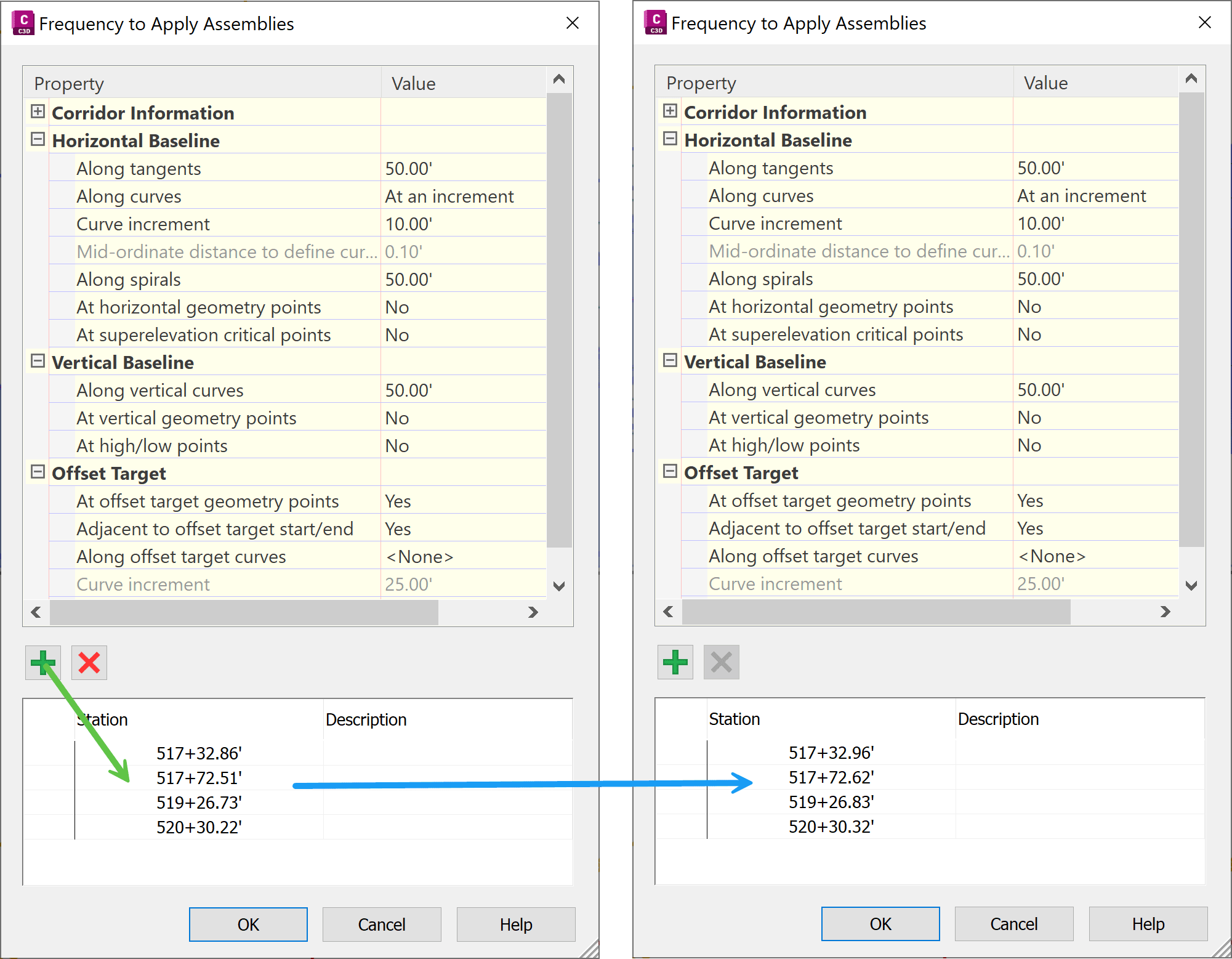 - From Corridor Properties → Frequencies → Specify Additional Station button +
