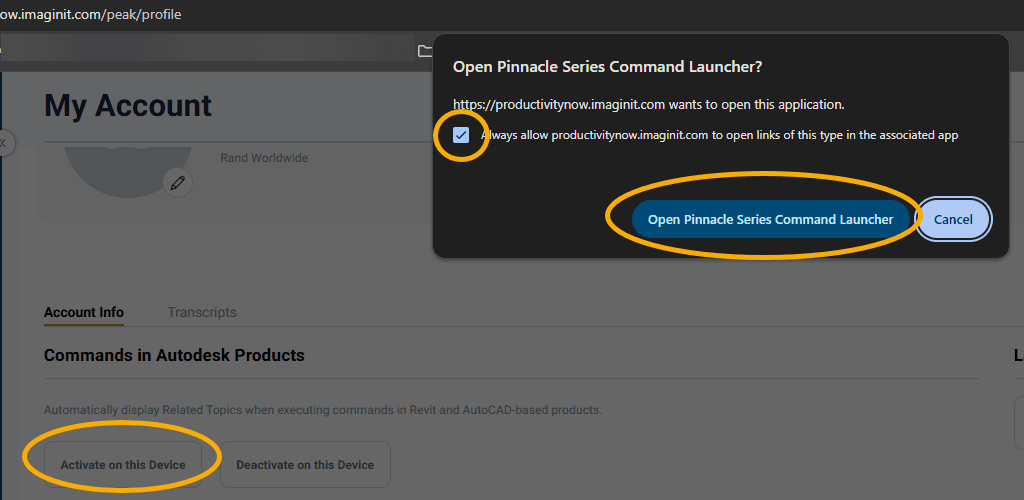 Click on the 'Activate on this Device' button and 'Open Pinnacle Series Command Launcher' in the pop-up to activate the User Tools.
