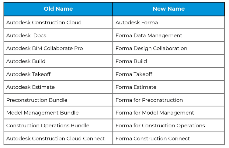 • You’ll simply start seeing the new Forma names and branding across the platform