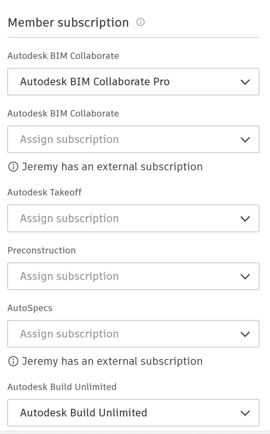 Autodesk Docs is only available to assign from the ACC platform if the customer has subscription for standalone Docs licenses. Docs licenses that are part of AEC Collections cannot be assigned from the ACC platform; they need to be assigned from the customer's Autodesk Account (manage.autodesk.com). BIM Collaborate Pro, Build, and Takeoff include Docs when assigned to users, and therefore, there is no separate Docs subscription to assign.