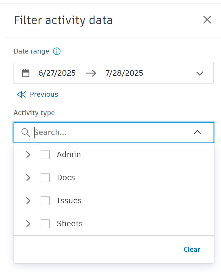 Time Range: While the default is the last 31 days, users can adjust the filter to view activity data up to the last 12 months.