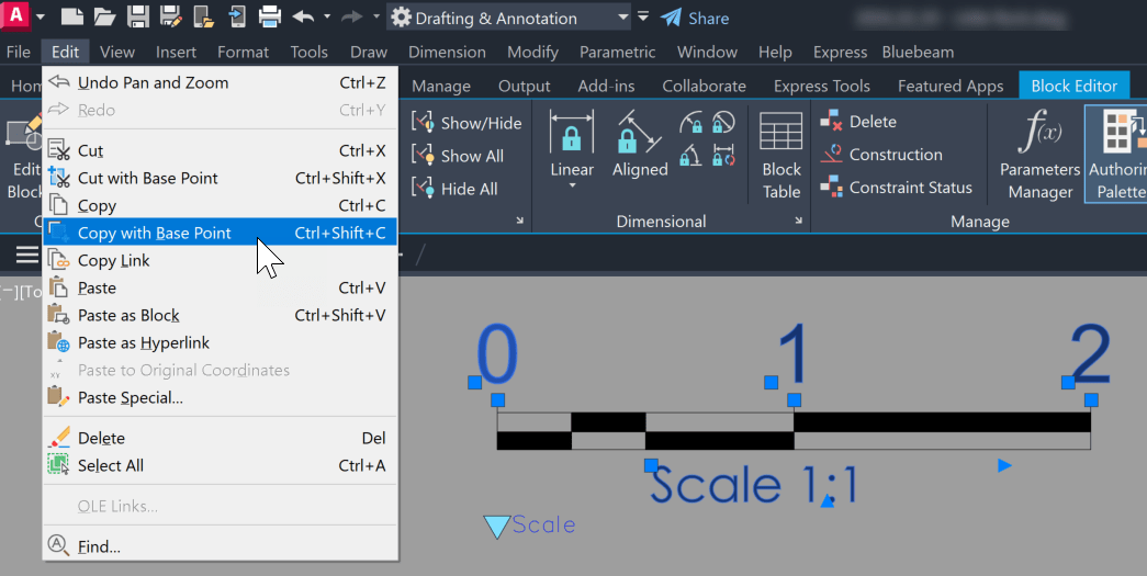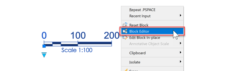 - Select the scale bar, right click and choose ‘Block Editor’ from the context menu.