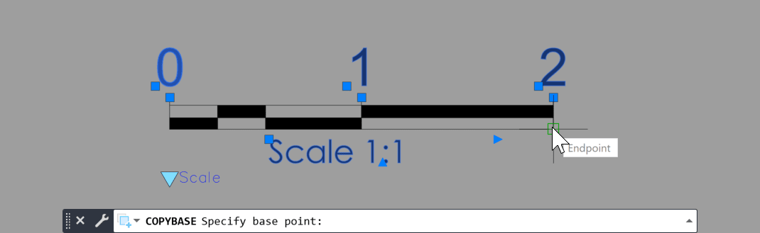 - Pick a Base Point. Preferably endpoints from any corner of the scale bar graphics (useful since the graphics will remain visible in all states).