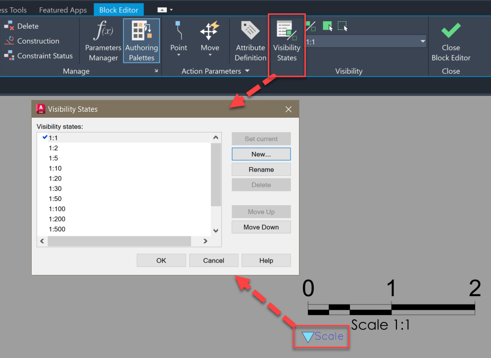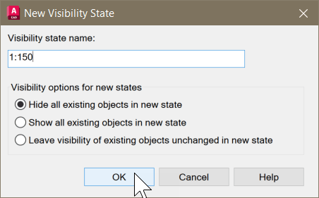 - Click on ‘New’ to create a new Visibility State, and change the Visibility state name to new scale you wish to add, for example, 1:150.
