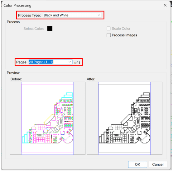 5. Enable Process Images if you want the conversion to affect raster images and photos in addition to vector linework and text.