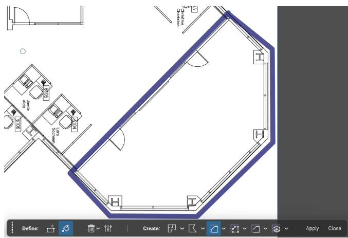 To add a temporary boundary within the desired shape, select Add Boundary, then click two or more points on the drawing. Complete the boundary by double-clicking the final point or pressing ENTER.
