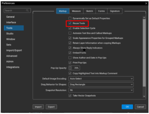 You can now apply markup or highlight annotations to multiple objects within a PDF without needing to reselect the tool after each use. This allows for continuous, efficient annotation while maintaining consistent markup settings across multiple selections.