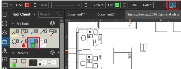 With this mode enabled, each click applies the selected tool—such as the Rectangle Tool—allowing you to place repeated markups without reselecting the tool between actions.