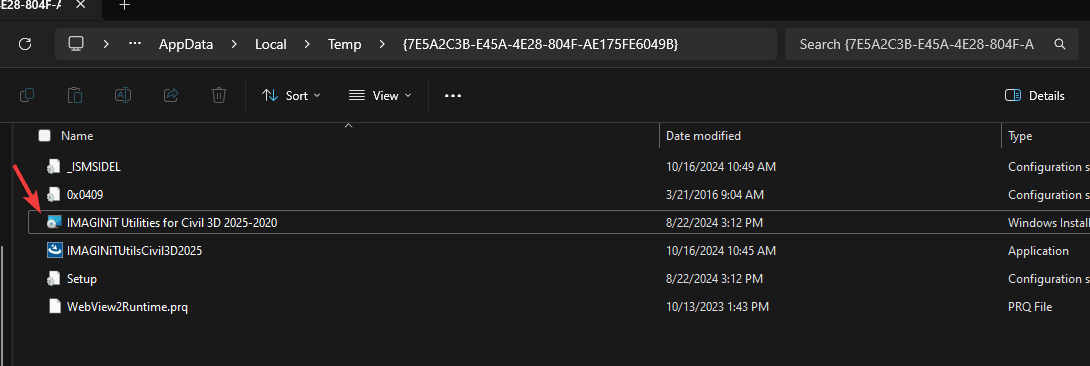 - With the installer still running, navigate to your %temp% folder and find the newest folder. This folder will contain the MSI file for the IMAGINiT utility install. Move the MSI file to a folder you can easily navigate to.
