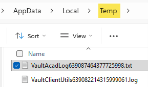 The cause of the new issue is related to a missing IMAGINiT.VaultJobs.Acad.dll file from the Utilities for Vault Client 2020-2026 folders. To check if the missing IMAGINiT.VaultJobs.Acad.dll is the cause of the problem you are experiencing, open File Explorer on the Job Processor system and go to the user Temp folder. Find the recent VaultAcadLogXXXXXXXXXXXXXXXX.txt. See example below.
