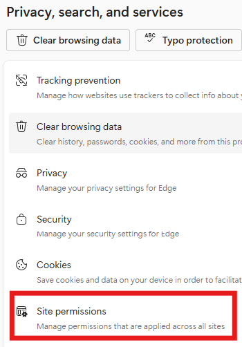 6. Click “Add site” on Allow to send pop-ups and use redirects