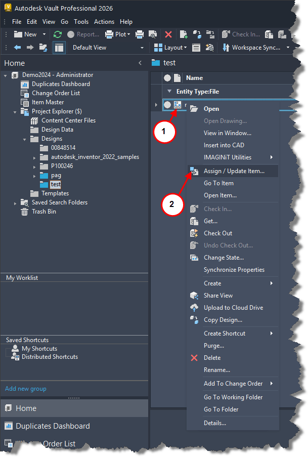 Right clicking on file to Assign/Update Item… produces Error.