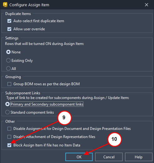 9. Uncheck Block Assign Item if file has no Item Data selection