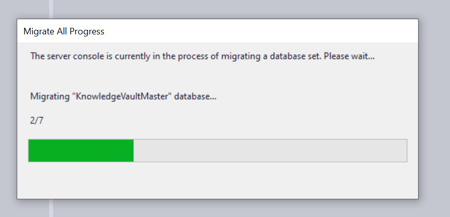 The Vault databases need to be migrated each time a Vault Server update is installed. This will migrate the databases from the pre-update build to the build of the Vault update.