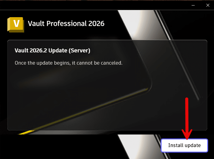 Once these services have been stopped, then proceed with installing the Vault 2026.2 update.